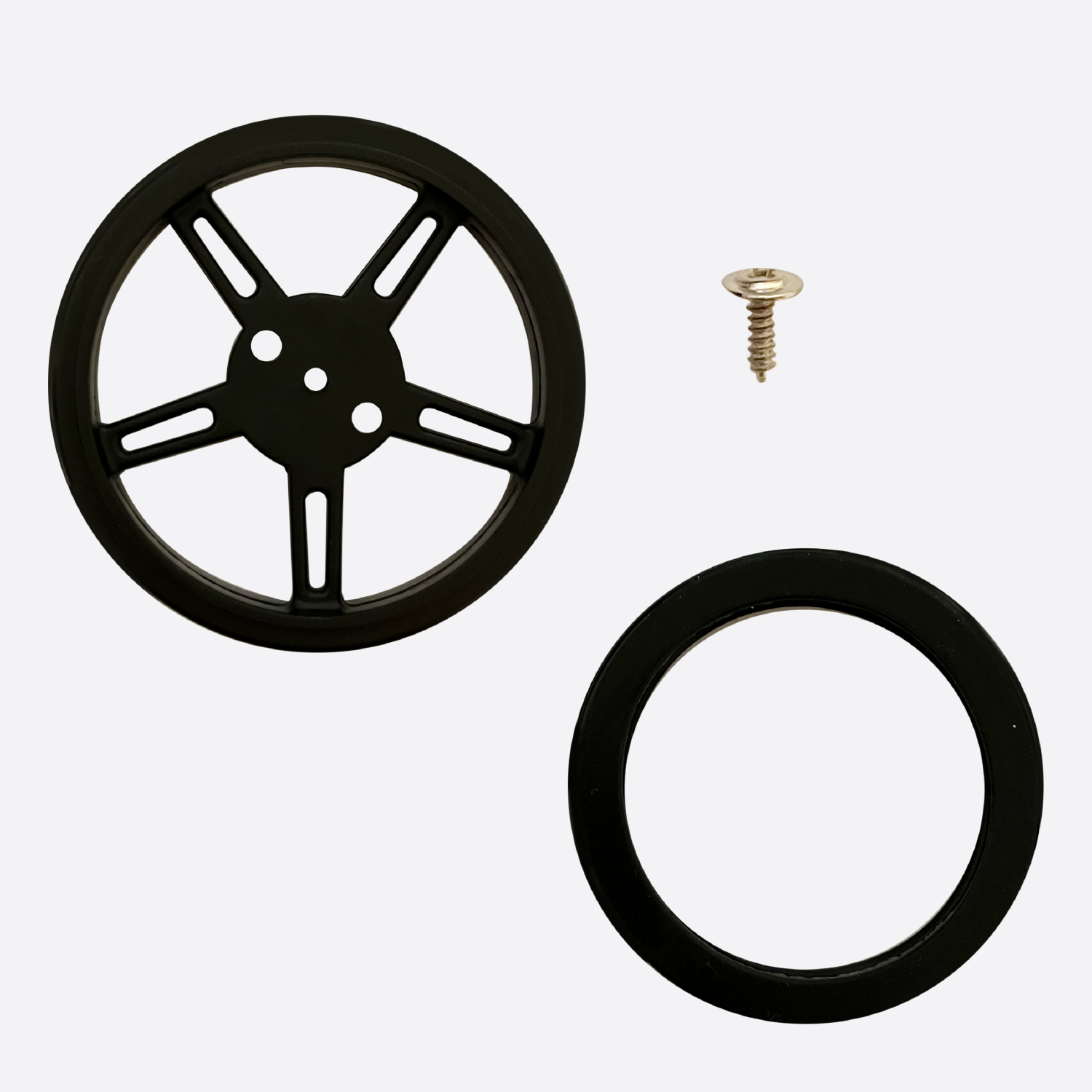 連続回転サーボモーター(TFW-AD-SB-R1)に対応したタイヤです。中学技術情報に最適です。使用する際はタイヤをホイールに装着し、サーボモーター(別売)に取り付けてください。