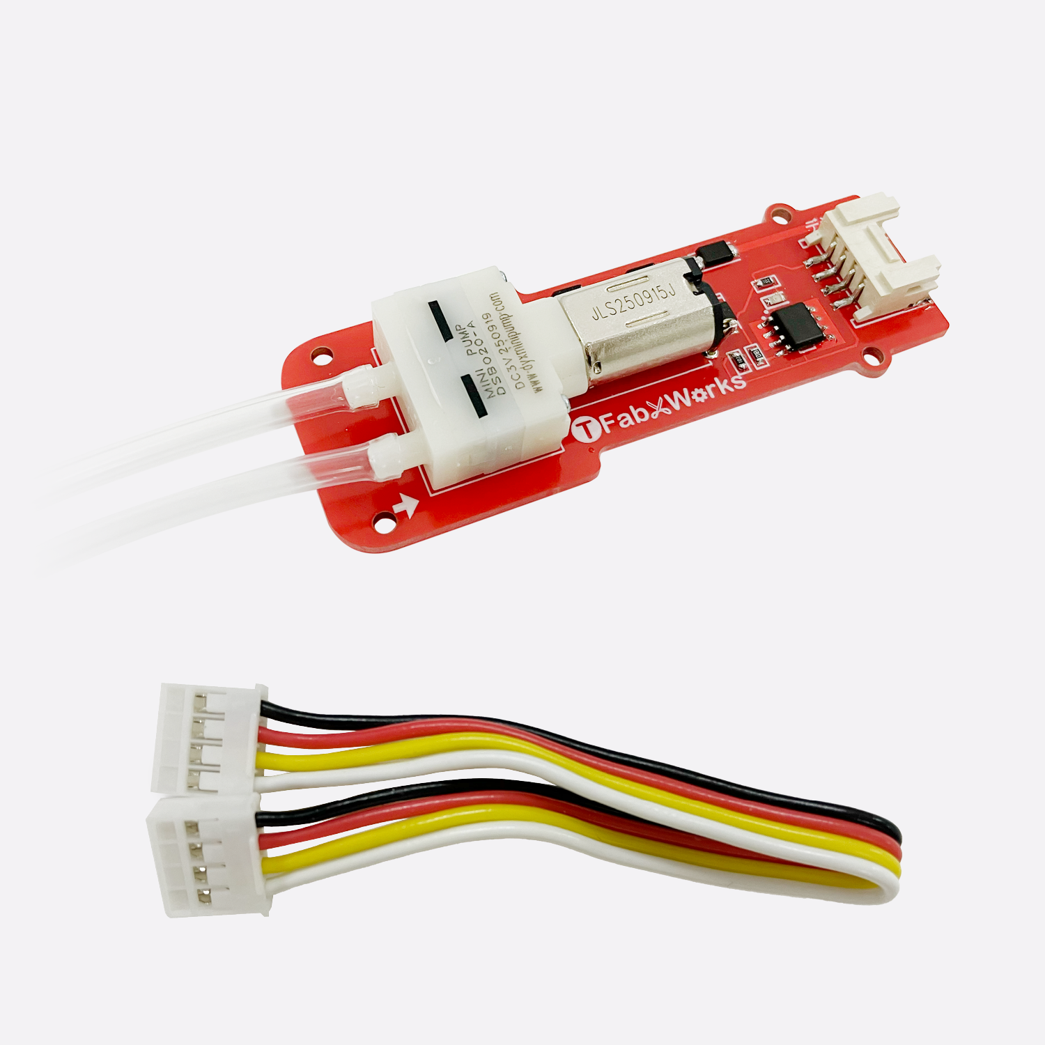 AkaDakoファミリーのGrove端子(デジタル)に接続できるポンプです。水を吸い上げて送ることができ、潅水や栽培の授業での活用も可能です。水以外にも水槽用のエアポンプとしても使用できます。チューブ(約50cm)が2本付いています。中学技術情報/計測制御に最適です。